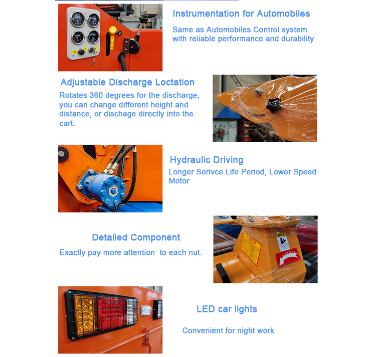 Tail lights, feed lighting, foldable hand shake jack, traction height adjustable,with motor cover plate and chain conveyor.